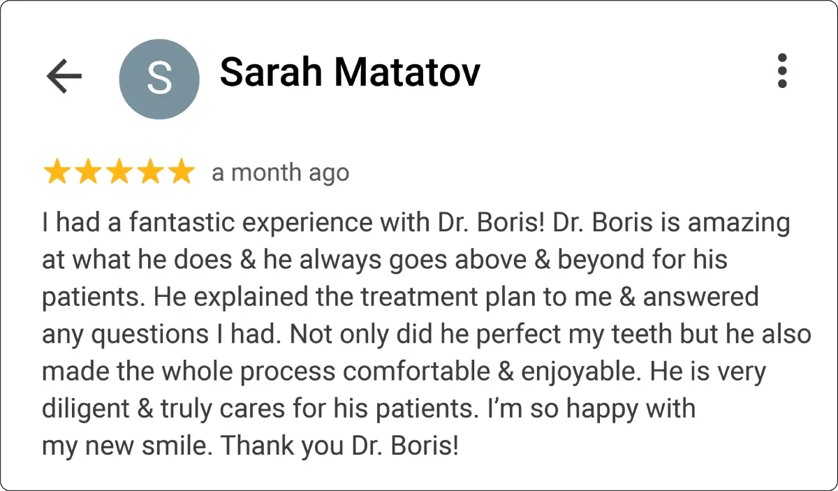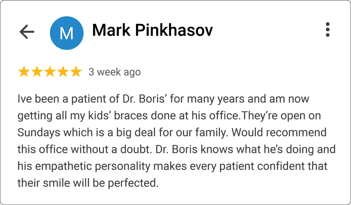 Dr. Boris is a caring and compassionate person and is committed to delivering the highest quality care to his patients. He regularly attends local and national conferences, seminars, and continuing education courses to stay up to date on the latest developments in the field. Dr. Boris is also an active member of the American Association of Orthodontists and Northeastern Society of Orthodontists.